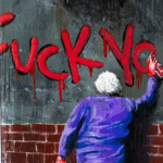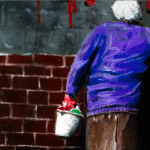 À primeira vista, a cena parece familiar: um beco urbano, uma parede marcada pelo graffiti e uma senhora que, com esforço, tenta restaurar a ordem. Mas “Atitude Não Tem Idade” é uma obra sobre subversão. Olhe mais de perto. Ela não está apagando a mensagem; está completando-a. Com o balde em uma mão e a esponja na outra, ela transforma um ato de vandalismo em seu próprio manifesto.